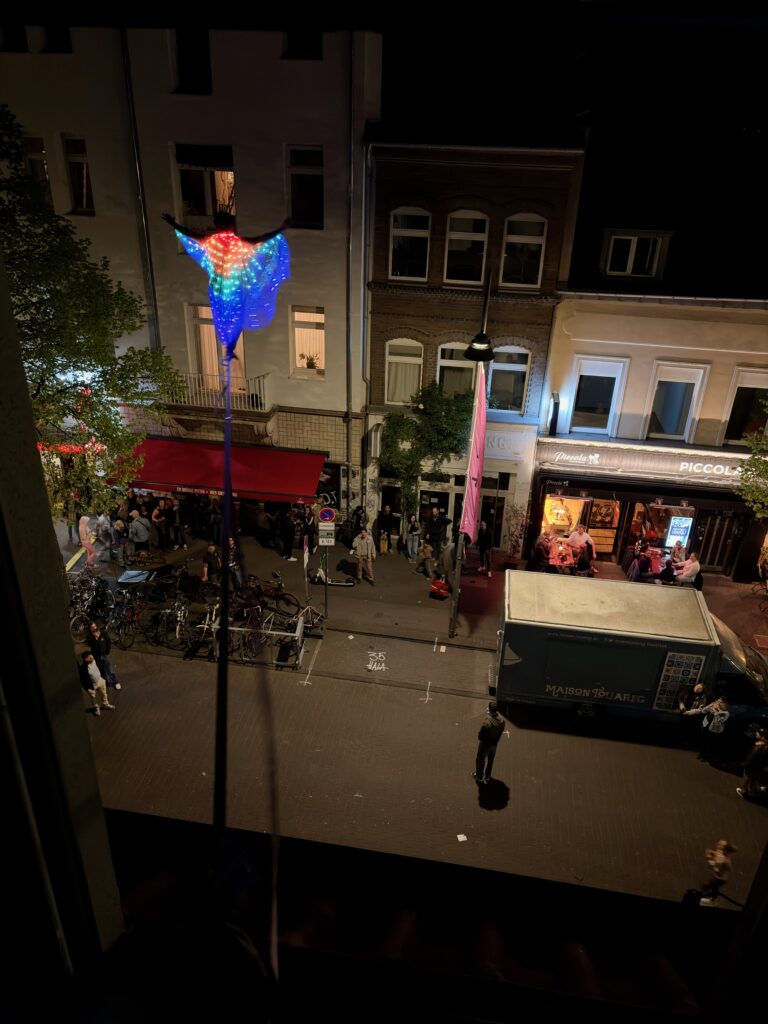 Ein riesiges Dankeschön an Miriam (die uns ihre Wohnung zur verfügung gestellt hat), das c/o pop Team, das Bürgerzentrum und alle, die uns von unten angefeuert haben. Solche Aktionen zeigen uns immer wieder, warum wir diesen Sport so lieben. Es geht darum, Grenzen im Kopf zu verschieben und die Stadt mal aus einer ganz anderen Perspektive zu zeigen.